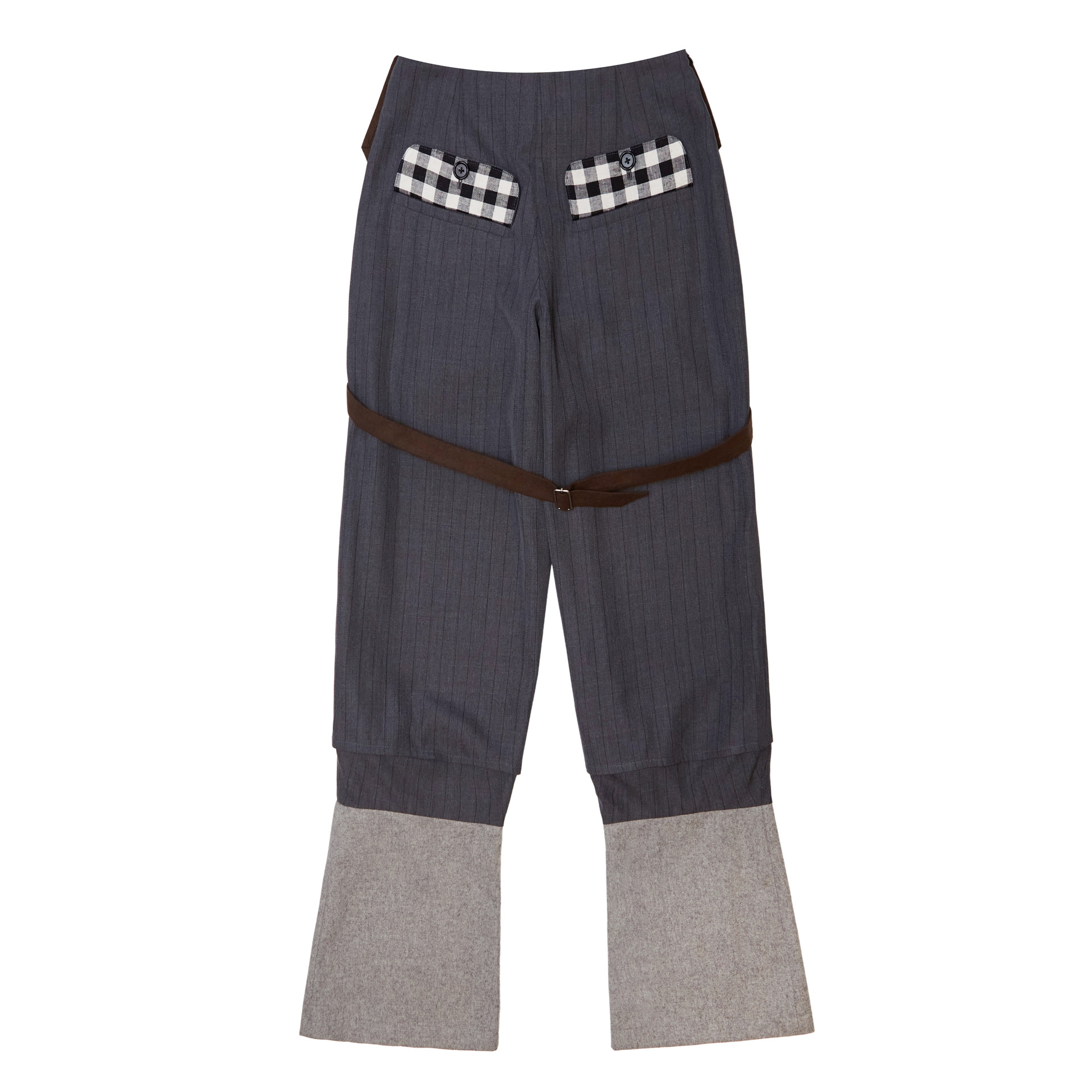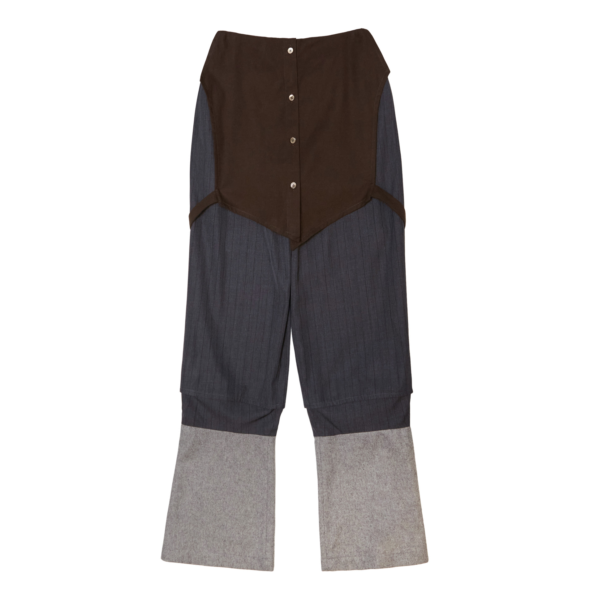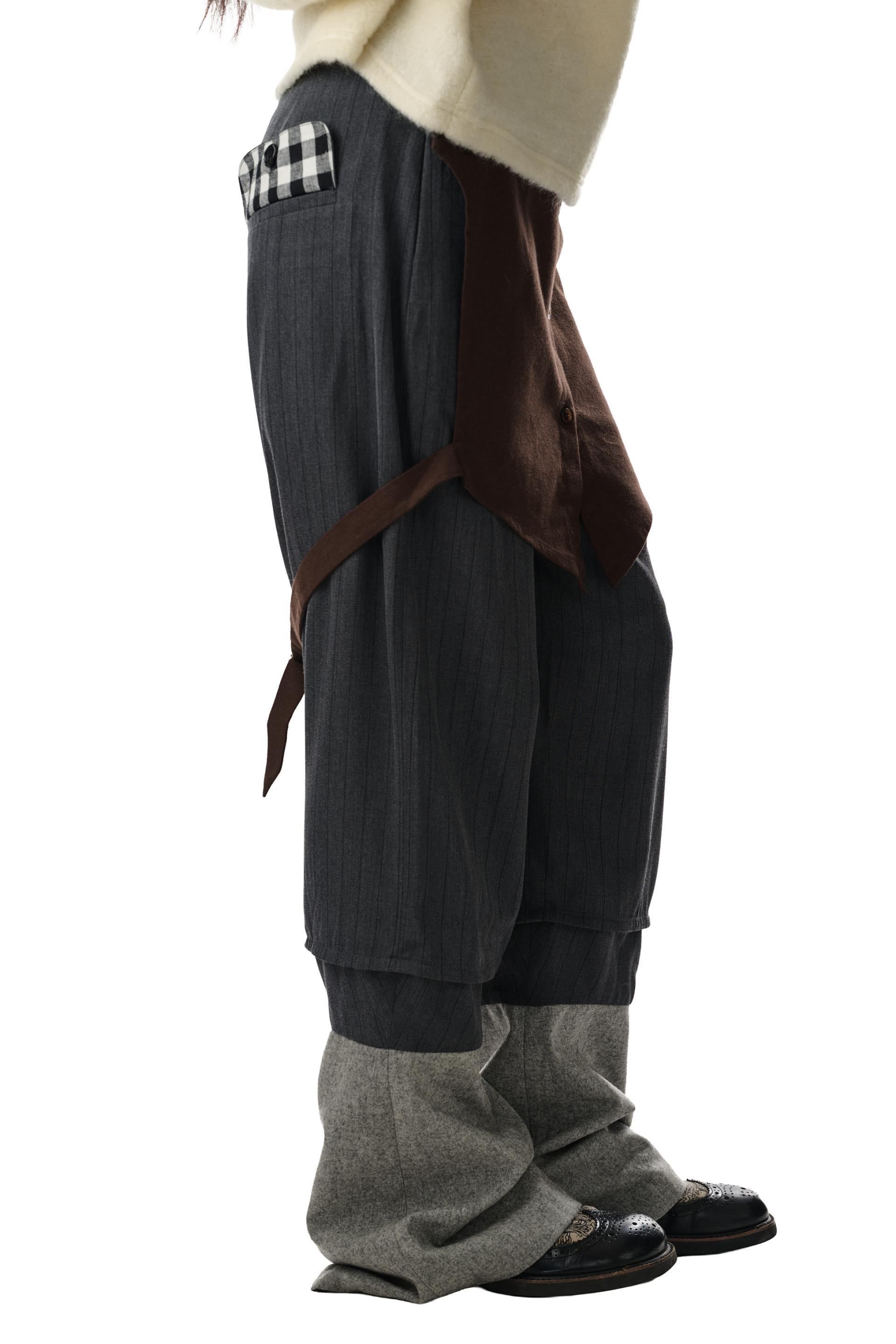 - 허리와 앞면을 감싸는 면 셔츠 패널이 부착된 와이드 레그 팬츠